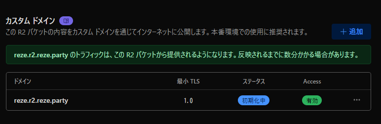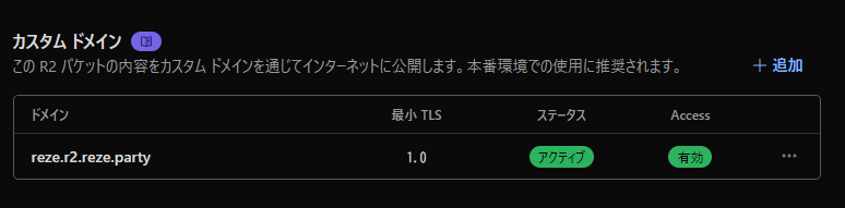 カスタムドメインを接続するとCloudflare CDNのCacheの恩恵を受けることができますが、バケットの中身が公開されます。