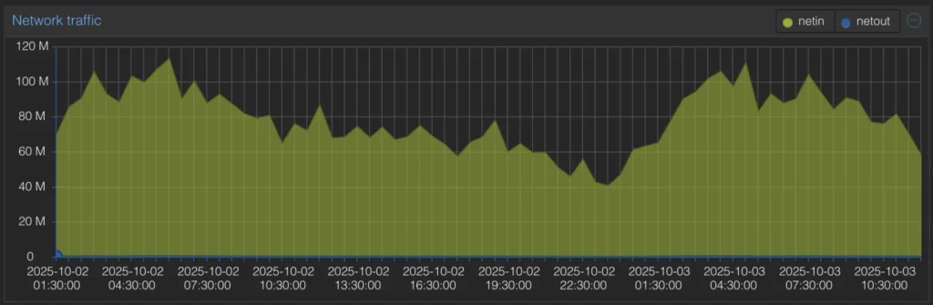 Cloudflare Radarのグラフのトラフィックグラフの推移と概ね一致します。